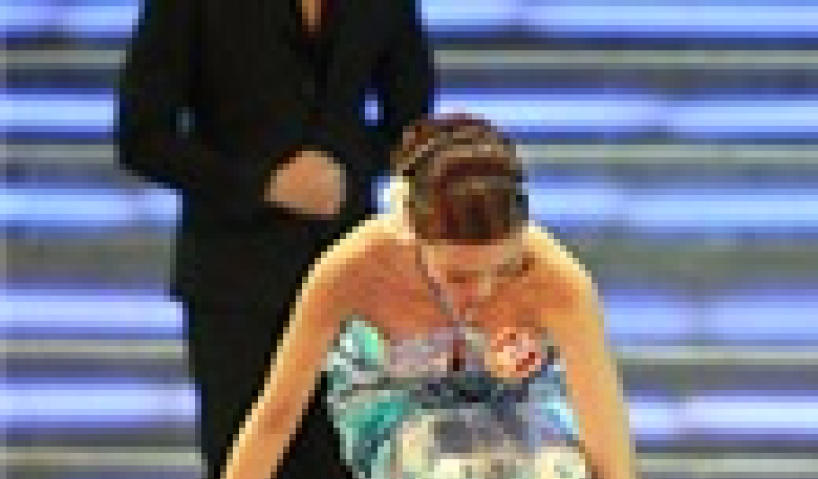 Vì đôi giày cao chót vót mà người đẹp đến từ Canada Lê Thị Hồng Nhung và Hoa hậu Biển 2007 Đặng Minh Thu thiếu chút nữa là …“vồ ếch” trên sân khấu.