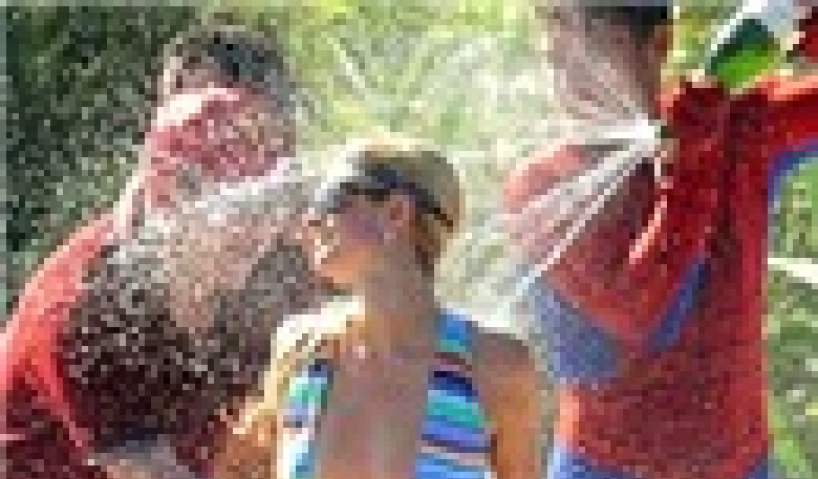 Kiều nữ nhà Hilton thư giãn sau một ngày vui chơi tại St Tropez bằng việc tắm mình trong sâm panh và mặc cho các thợ săn ảnh, khách du lịch hiếu kỳ chụp ảnh.
