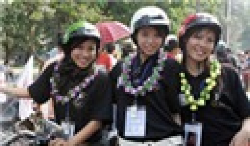 Ngày thứ 9 của cuộc thi Hoa hậu Thể thao Việt Nam 2007, chương trình diễu hành cổ vũ người dân đội mũ bảo hiểm khi đi xe máy ra đường được các thí sinh h